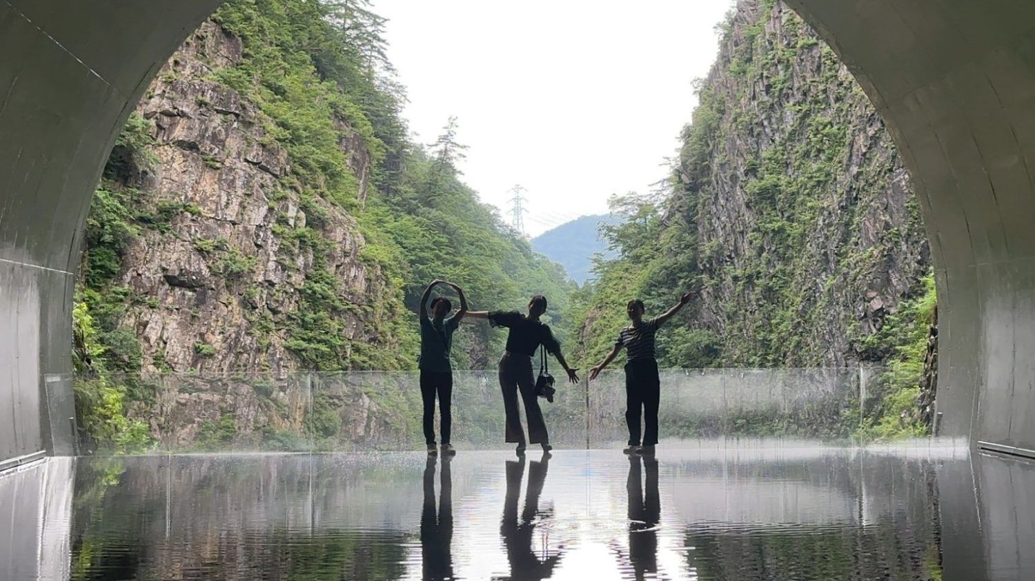 水鏡に映った風景と自分たちの影が一つのアートの中に溶け込む、そんな一枚を撮ることができるスポットです。
