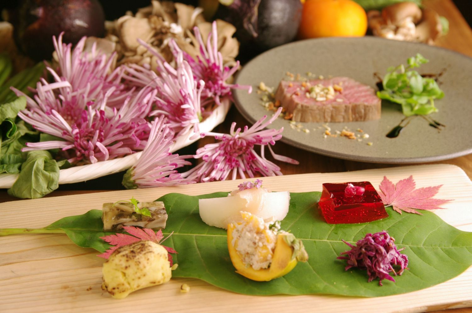秋のお皿の中には紅葉を思わせるような彩り豊かな食材が並びます。