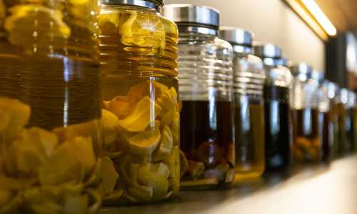 | 瀬戸内レモンのお酒 ベース:焼酎 ALC.35% | 瀬戸内のレモンを乱切りにし漬け込み、酸味とビターなレモンの香りがそそる1杯に仕上がりました。無添加無着色の自然のままの味わいを楽しんでもらうため、ソーダで割ればryugonオリジナルのレモンサワーの完成です。 |